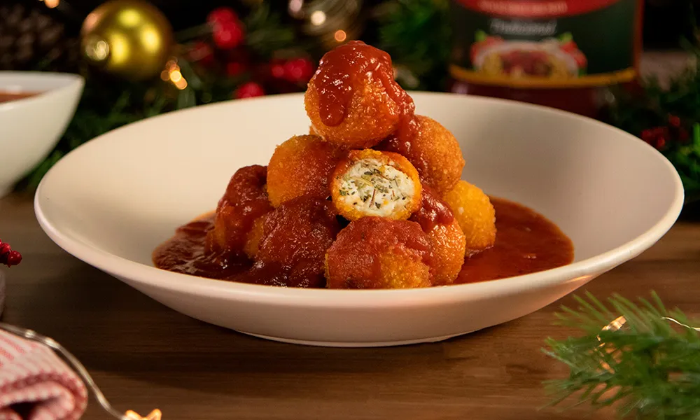 5. Coloca las bolitas de queso en un plato hondo y agrega Hunt’s® Salsa para Pasta Tradicional preparada y disfruta.