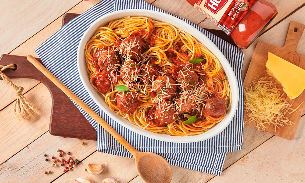 5. Sirve en un plato la pasta caliente y baña con la salsa y las Albóndigas.